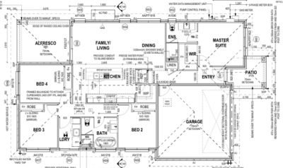 - Open plan living and dining spaces, opening onto the covered alfresco