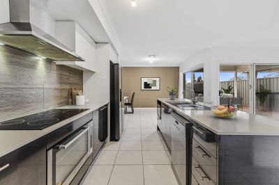 The open plan kitchen, dining and family zone is the true heart of the home. The kitchen is both stylish and practical, with stone look benchtops, quality appliances, a large island, walk-in pantry and timber look splashback. Whether you're cooking, relaxing or entertaining, this space has you covered.