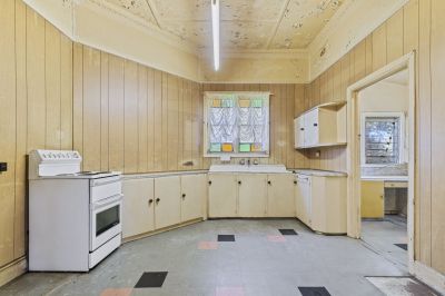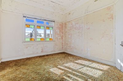 Step through the front door and you'll be greeted by the unmistakable craftsmanship of a bygone era. This is where the soul of the home lies in its original features, timeworn yet enduring, waiting patiently to be restored or reimagined. Throughout the home, high ceilings create a wonderful sense of space and airiness, complemented by oversized sash windows that bathe each room in soft, natural light. The two large front bedrooms feature coloured leadlight glass, generous proportions and quiet charm, while a third smaller room sits further back.
