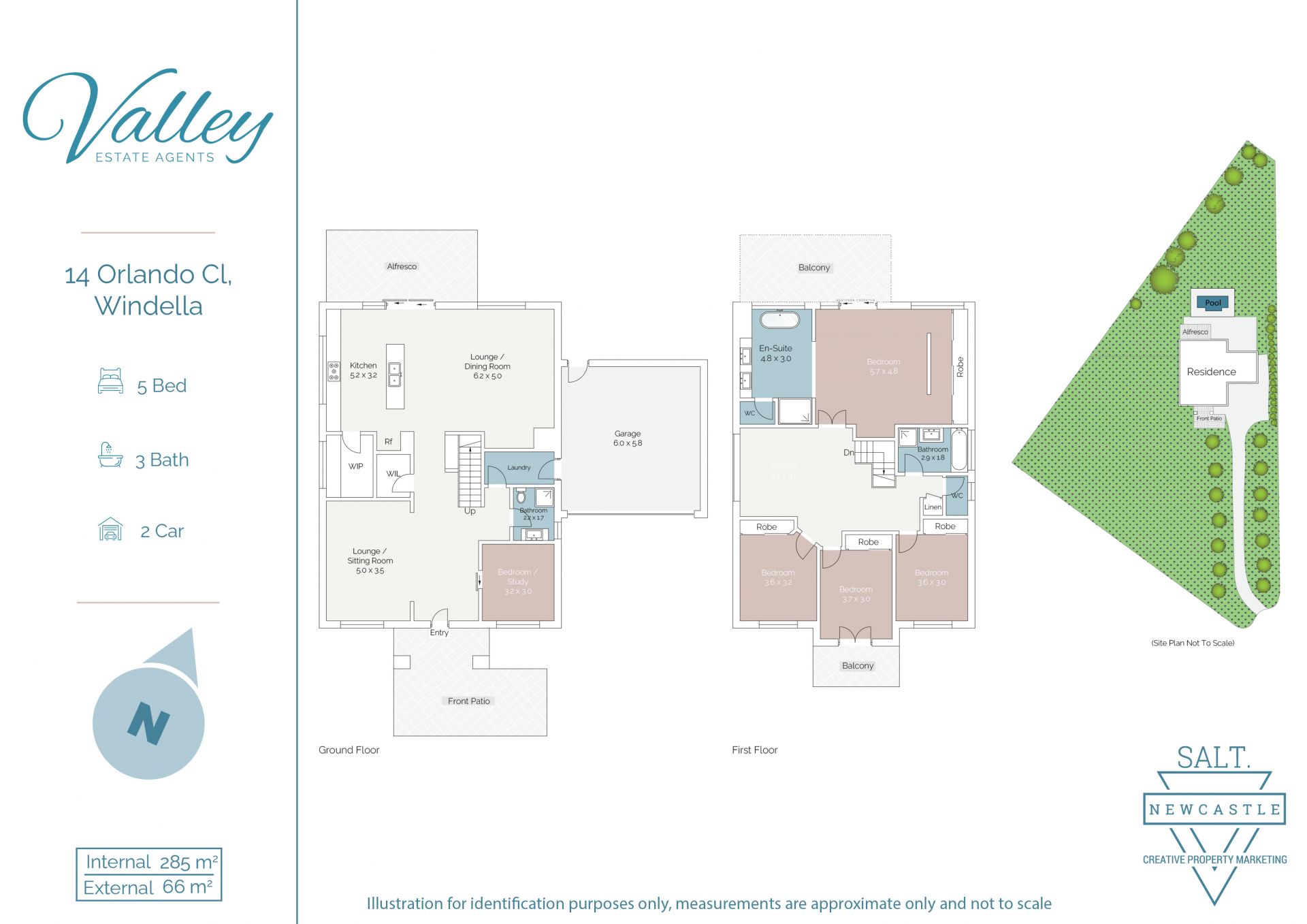 - Formal lounge, informal dining and family room and living room upstairs