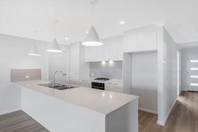 The four bedroom home features neutral décor, light filled spaces and open versatile floorplan throughout. Modern chef's kitchen with gas cooking and stainless appliances, stone benchtops and white gloss cabinetry, overlooking the open plan living and dining areas at the heart of the home, through to the covered alfresco for indoor/outdoor entertaining.